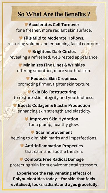 Regeneration, Rejuvenation, Hydration, Improved elasticity, Healing, Firmness, Repair, Anti-Ageing, Brightening, Protection, Restructuring, Lifting, Smoothing, Toning, Plumping, Collagenesis, and Revitalisation.